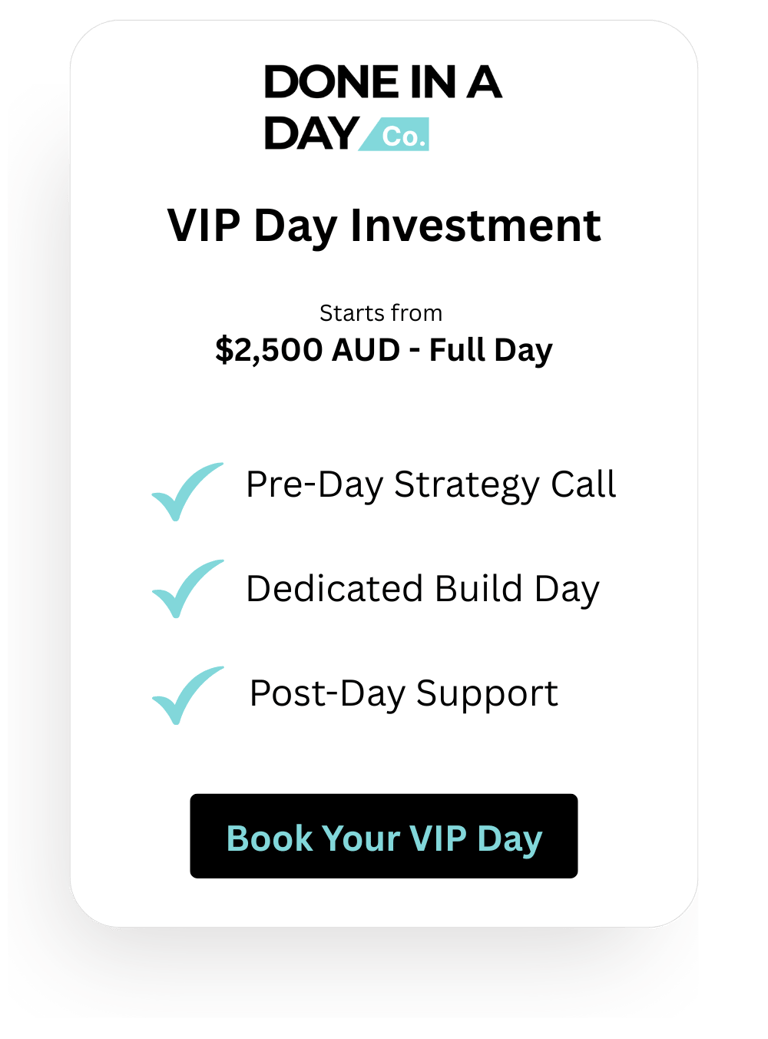 Book a free 15-minute clarity call — we’ll talk through your goals, what’s possible in a single day, and whether it’s the right fit for your business.